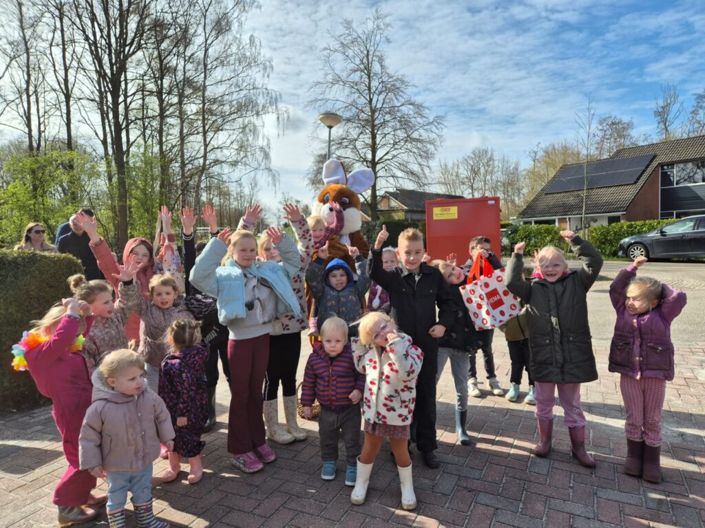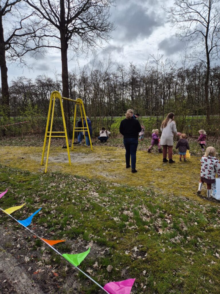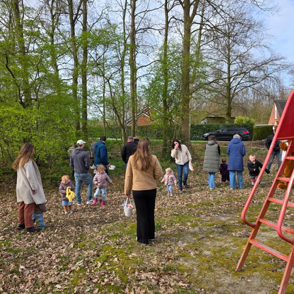 Met 23 kinderen was het paaseieren zoeken weer een groot succes.